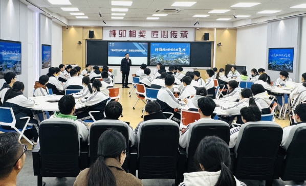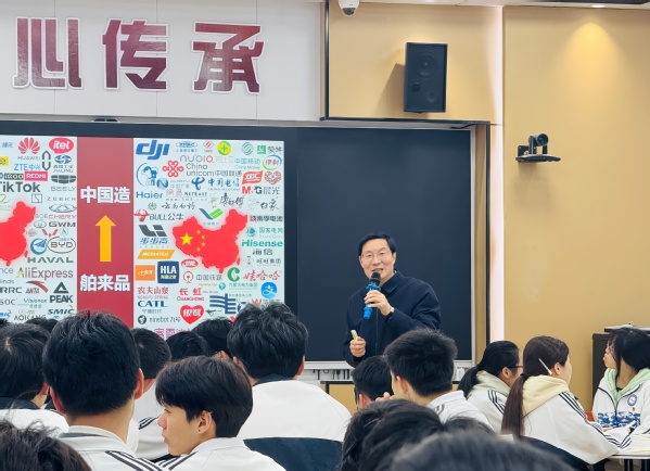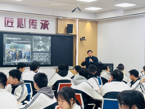 徐须实以《科技创新引领民族复兴——我国的科技创新之路》为题,以2025年寒假最火爆的事件,《哪吒2》风靡全球,人形机器人亮相春晚,DeepSeek大模型领跑全球开篇,围绕“何为科技创新?”“科技创新,中国何为?”“科技强国,我们何为?”这三个问题展开,从历史和现实两个维度,讲述了第一颗原子弹试爆成功,神舟飞船飞出“中国高度”,高铁列车跑出“中国速度”等生动案例、感人故事、具体数据,回顾了中国在不同工业革命阶段从默默“跟跑”,艰难“并跑”到勇于“领跑”的巨大转变,阐释了中国科技创新引领制造业高质量发展的时代蝶变,揭示了科技创新在推动国家发展和民族复兴中的核心作用,引发现场师生的强烈共鸣。