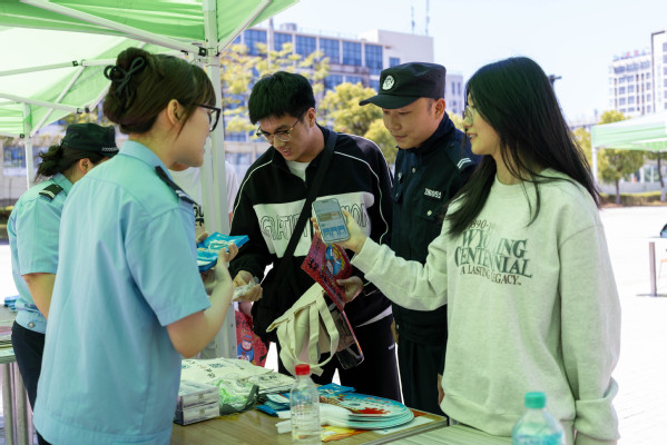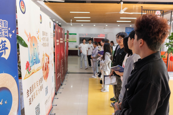 当天,在食堂广场打造的“校园安全宣传超市”成为校园新晋打卡点。46块主题展板以图文并茂形式解析总体国家安全观内涵,2个警示教育屏循环播放国家安全视频,艺术设计学院团员志愿者和其他单位志愿者现场发放了《大学生国家安全知识手册》、《保密手册》、《反邪教手册》、《反诈手册》等宣传资料1200余份。