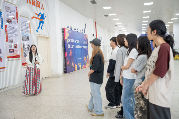 在文化旅游学院,发展对象驻留在拔河训练场前,为拔河训练学生加油鼓劲。通过参观党建文化阵地、地掷球、拔河、攀岩、健身、健美操实训场地,发展对象对学院体育特色项目发展及取得的成就有了深入了解,深切感知到文化旅游学院“以文铸魂、以旅立业、以体育人”的教育理念。