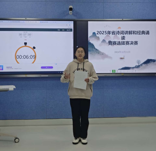 近日,我校2025年“诗词讲解”和“经典诵读”竞赛的校赛(省赛选拔赛)历经多轮选拔赛和淘汰赛,顺利落幕。