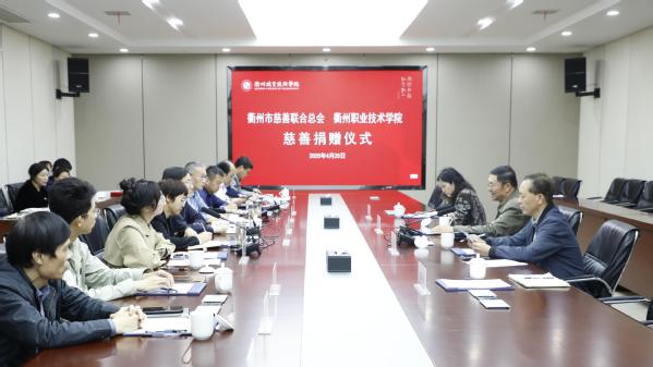 4月25日,衢州市慈善联合总会向我校捐助50万元善款用于爱心助学项目,衢州市慈善联合总会会长毛建民,衢州市慈善联合总会副会长王盛洪、副秘书长徐瑛,我校党委书记徐须实,党委委员、副校长徐浪静出席捐赠仪式,捐赠仪式由我校党委副书记何百通主持。