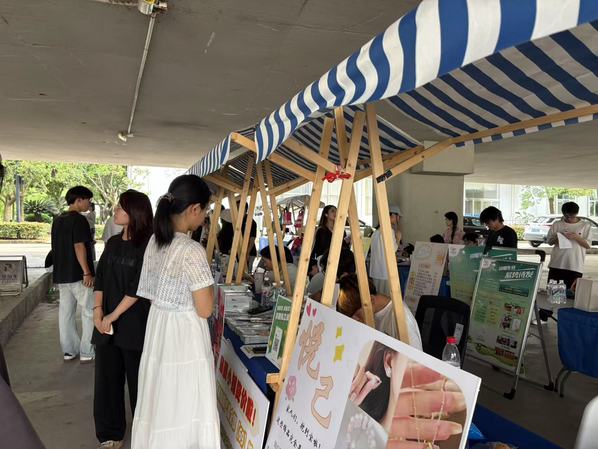 在创业项目展示区,小成本创业项目、校园文创摊位、创新服务项目等集中亮相。饰品设计、美甲手作、创意拍立得、科技贴膜、文具周边等摊位现场互动频繁,既展现了学生创业项目的实际落地能力,也营造了良好的消费体验氛围。