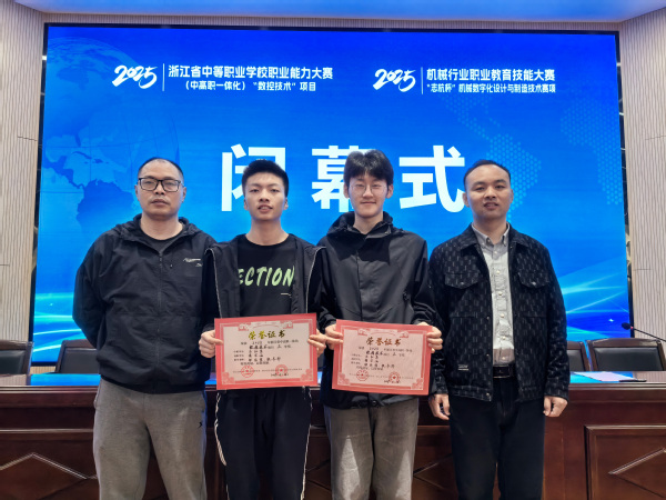 近日,2025年浙江省中高职一体化“数控技术”项目比赛在永康市职业技术学校顺利举行,我校徐欣彬、蒋亦涵、刘华辉三位同学分别与衢州第二中等专业学校、衢州中等专业学校、衢州市工程技术学校中职学生组成的三支联合参赛团队均获大赛三等奖。