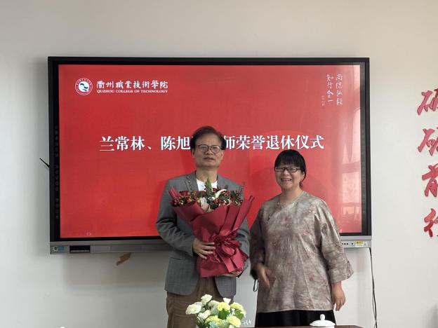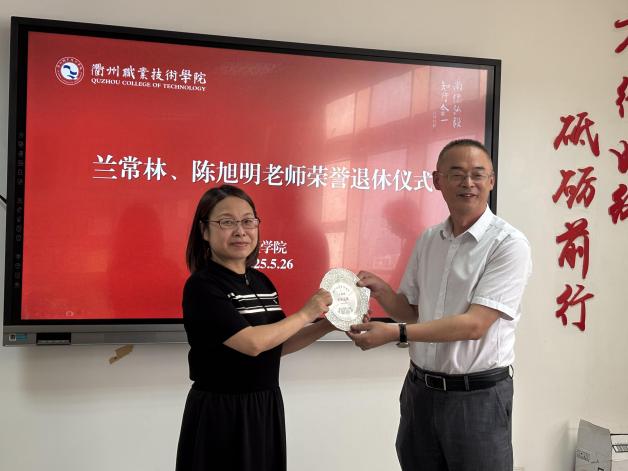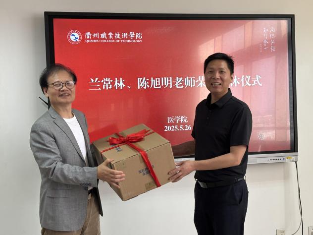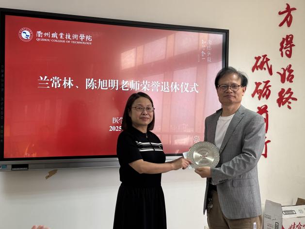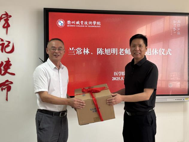 5月26日下午,医学院举行兰常林、陈旭明两位老师荣誉退休仪式,党总支书记洪兴华主持,院长邱惠萍、副书记周贞、副院长甘椿椿和部分教师代表参加。