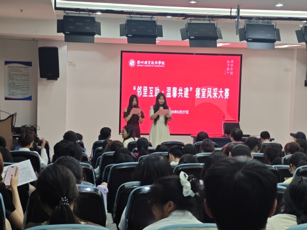 为营造安全、整洁、文明、和谐的寝室环境,展现当代大学生积极向上的精神风貌和团结友爱的寝室氛围,学工部于5月27日晚在二号报告厅成功举办了“邻里互助·温馨共建”寝室风采大赛决赛。